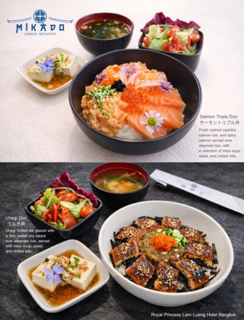 A refined Japanese donburi crafted with three selections of premium salmon —